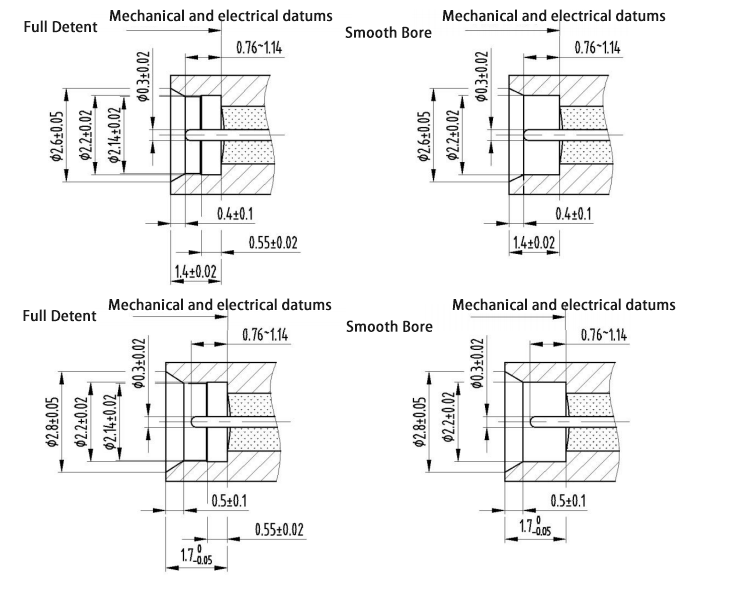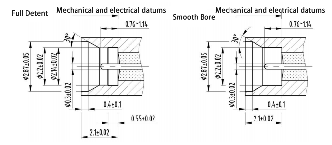 Az SMPM-J típusú légzárású RF koaxiális csatlakozóknak két interfészformájuk van: teljes kivezetés és csupasz lyuk. A modell elnevezésénél az F a teljes menekülést és a