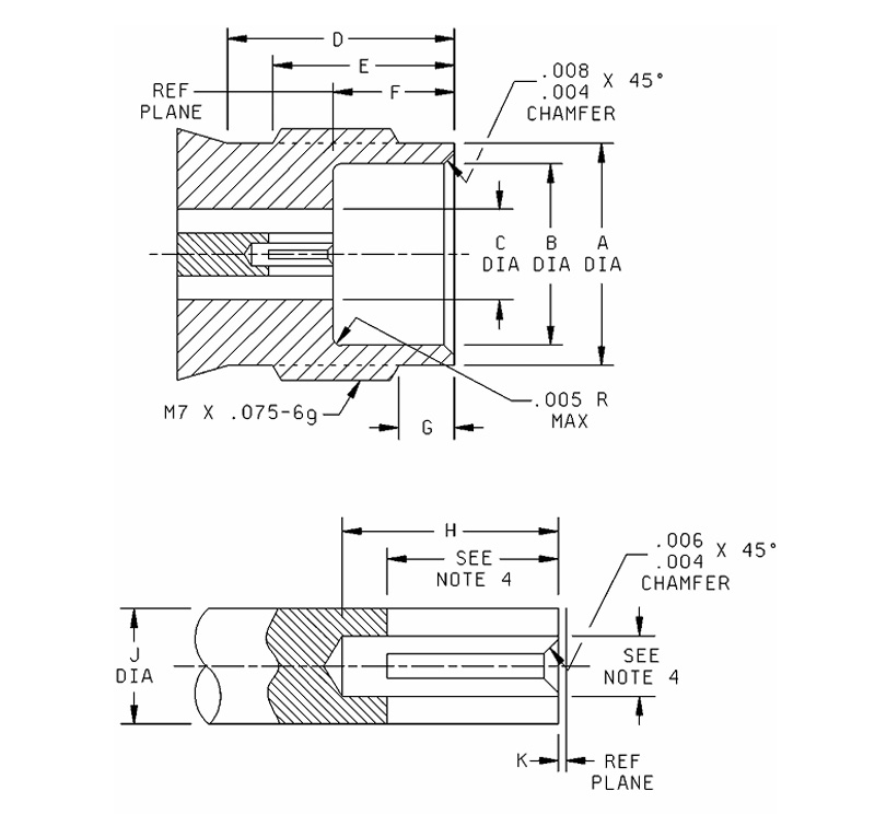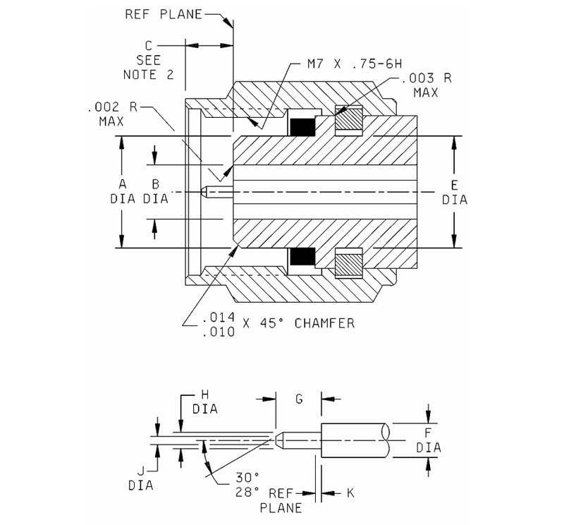 1. A menet hossza a csatlakozóanya végétől számítva, legalább 4,37 mm (0,172 hüvelyk), 0,63 mm (0,025 hüvelyk) ± 0,25 mm (0,010 hüvelyk).