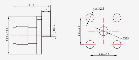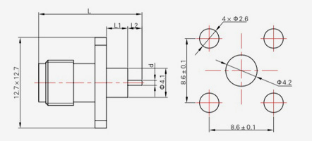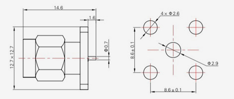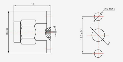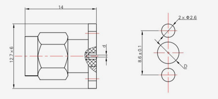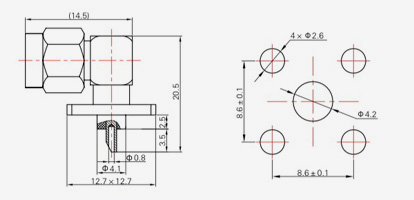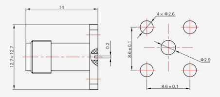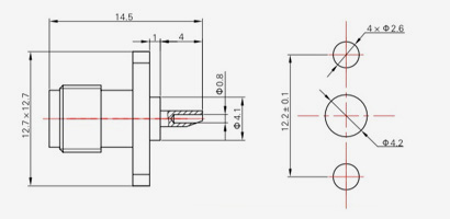| SMA-KFD45 | 14.4 | 2.4 | 0,5×0,2 | Φ4.1 | Φ4.2 |